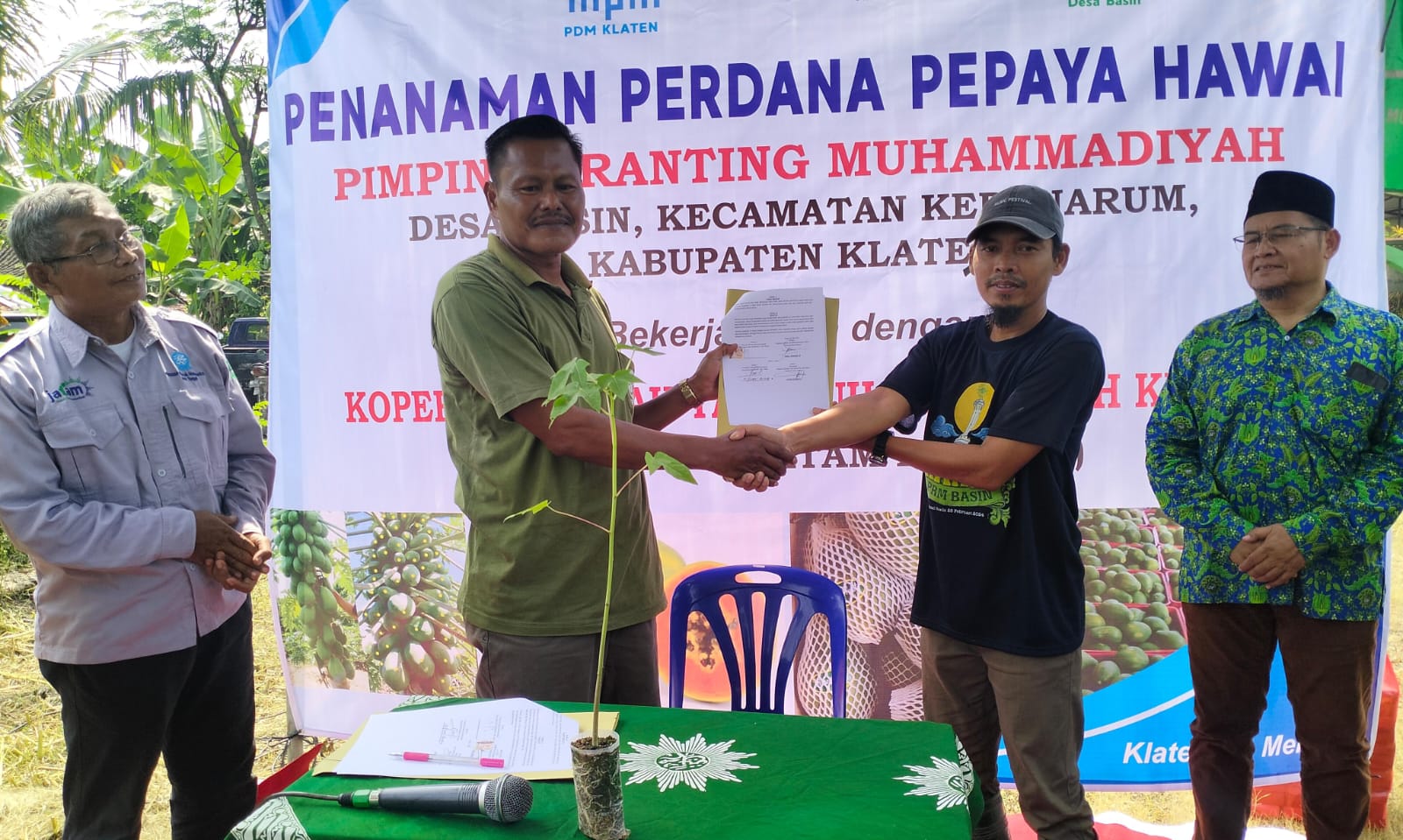 Sieradmu.com Klaten – Majelis Pemberdayaan Masyarakat Pimpinan Pusat Muhammadiyah hari ini (1/5/2024) melakukan tanam perdana pepaya hawai di lahan yang dikelola Pimpinan Ranting Muhammadiyah Basin, Kecamatan Kebonarum, Kabupaten Klaten. Sebelumnya PRM melakukan kontrak kerjasama dengan Koperasi Jamaah Tani Muhammadiyah Kabupaten Klaten yang berlaku tiga tahun.