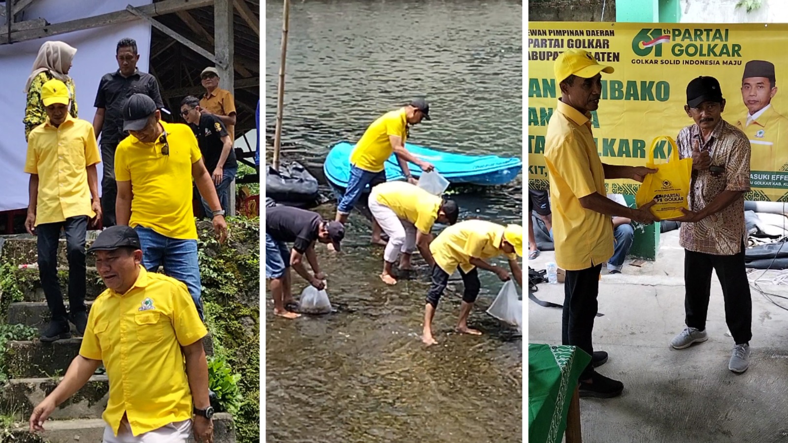 Dipimpin Ketua DPD Partai Golkar Klaten, Basuki Efendy, Kader Golkar sekaligus Pembina Komunitas Sungai Pusur ini menebarkan benih ikan yang diikuti para relawan komunitas sungai dan sejumlah kader partai berlambang pohon beringin.