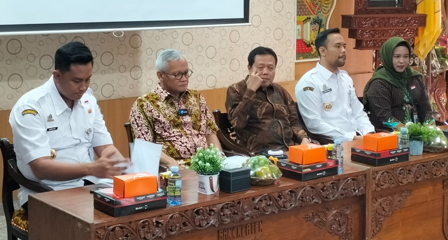 Di BPR Bank Klaten (Perseroda) Wakil Ketua Komisi II DPR RI Arya Bima bersama anggota Komisi II Muhamad Toha. Rombongan diterima Bupati Klaten, Hamenang Wajar Ismoyo, ikut mendampingi, Wakil Bupati, Benny Indra Ardhianto, perwakilan jajaran Komisaris, Direktur Utama Bank Klaten, Dewi Ekosari. K dan lainnya.