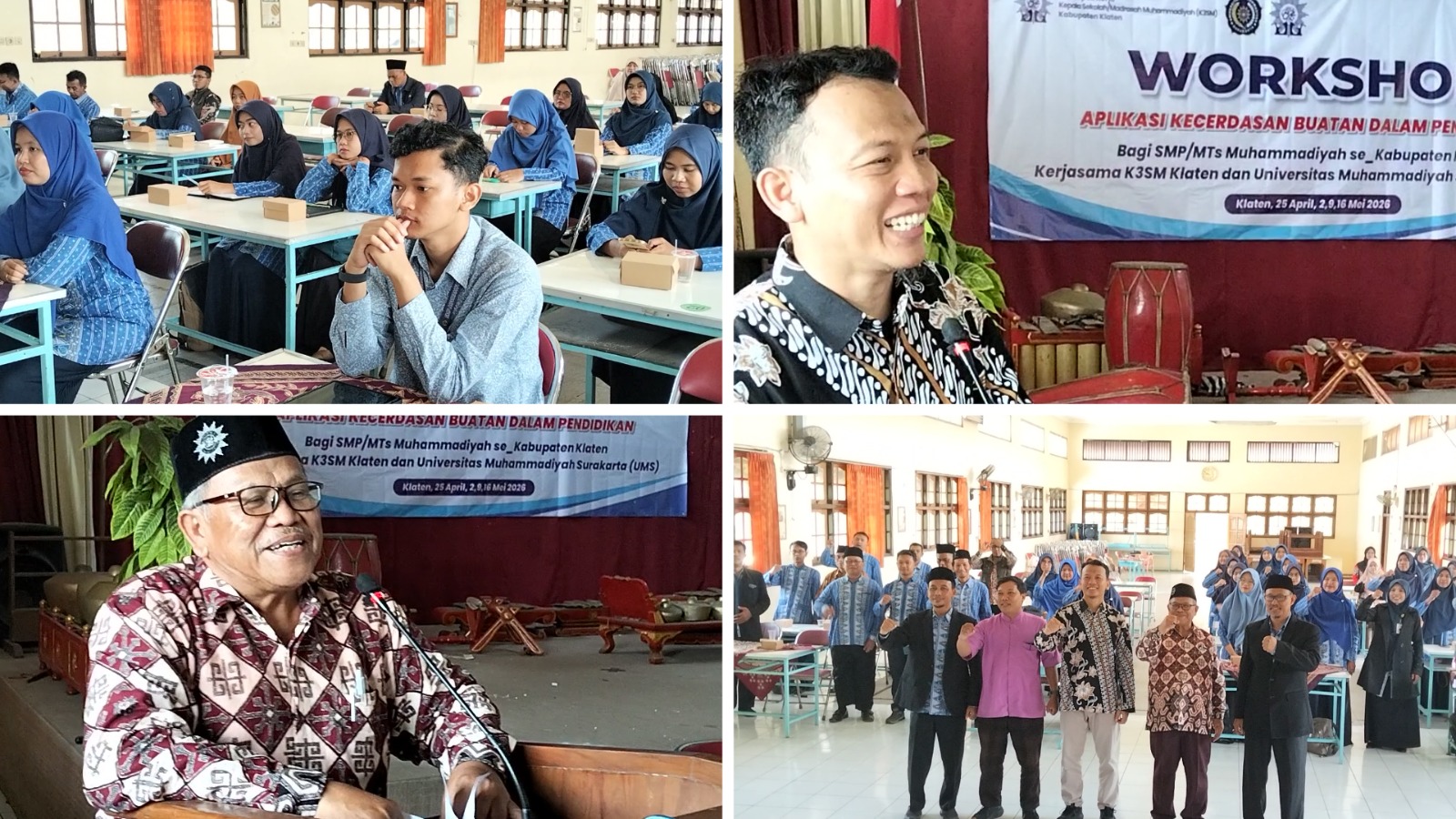 Sieradmu.com Klaten – Keleompok Kerja Kepala Sekolah/Madrasah (K3SM), SMP/MTs Muhammadiyah Kabupaten Klaten bersinergi dengan Universitas Muhammadiyah Surakarta (UMS) menggelar Workshop Aplikasi Kecerdasan Buatan Dalam Pendidikan yang dibuka hari ini (25/4/2026) di Aula Pertemuan SMP Muhammadiyah 1 Klaten.
